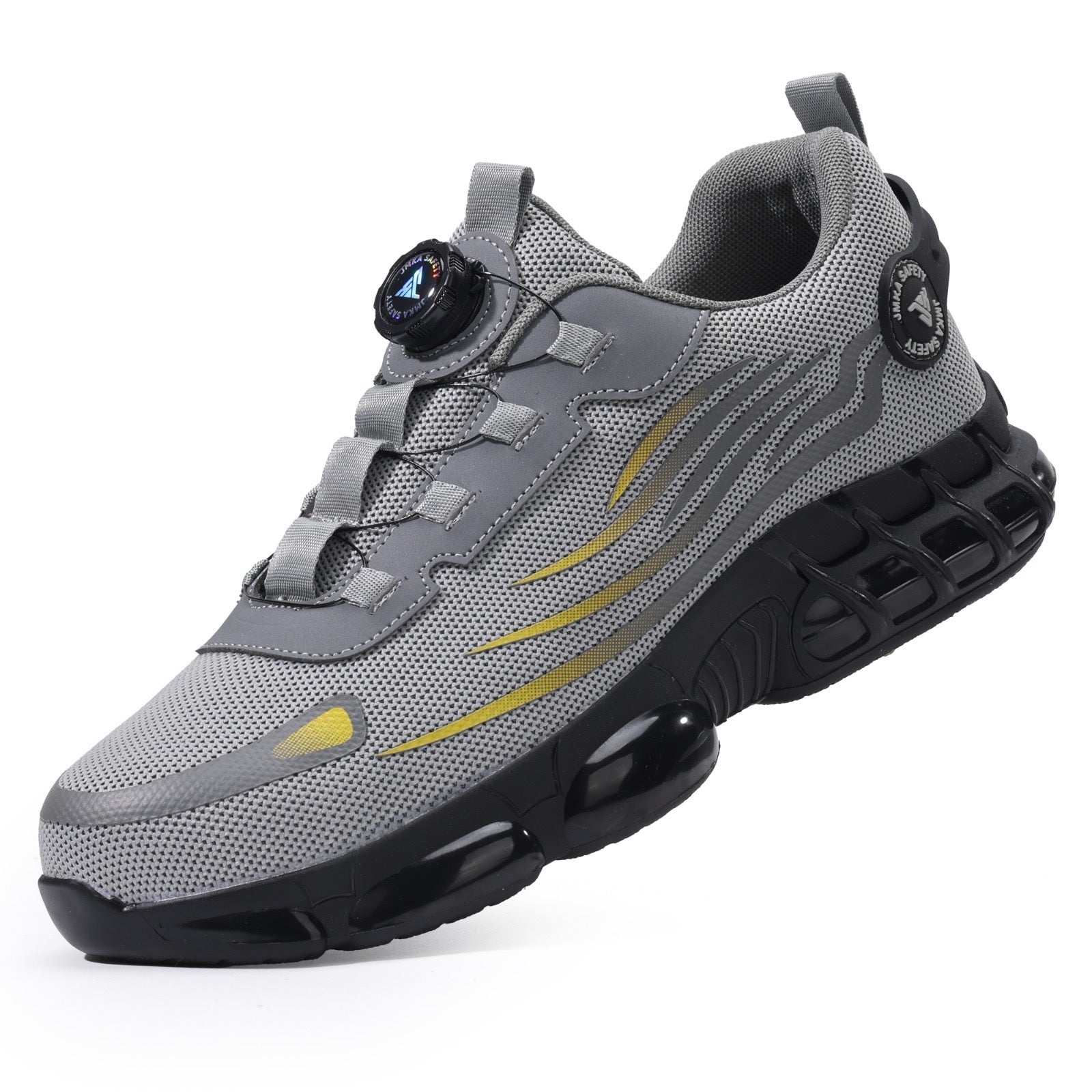 De stalen neus beschermt je tenen, terwijl het ademende bovenwerk en het lage gewicht ervoor zorgen dat je moeiteloos je werkdag doorkomt.