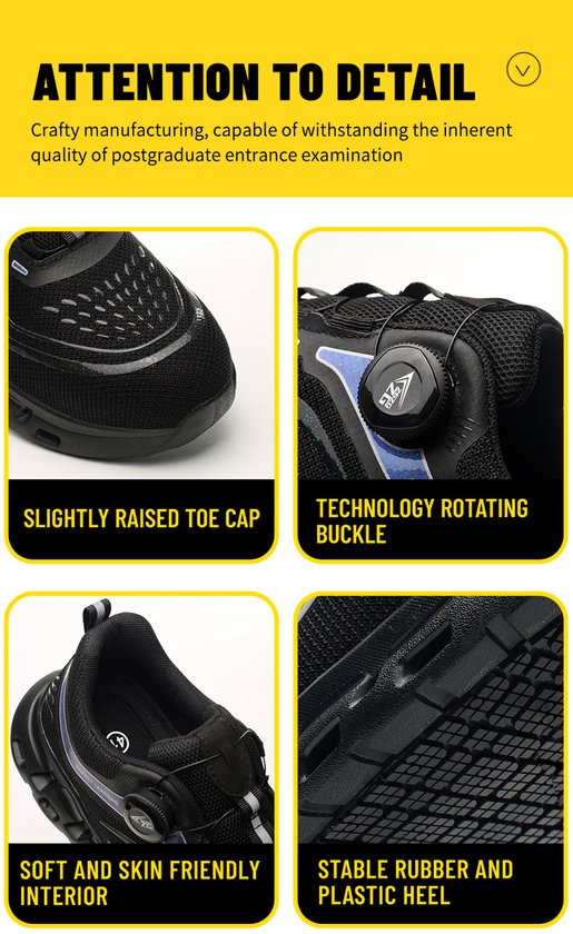 Deze werkschoenen zijn een absolute gamechanger! Vanaf het eerste moment dat ik ze aantrok, merkte ik hoe ongelooflijk comfortabel en licht ze zijn. Geen vermoeide of pijnlijke voeten meer na een lange werkdag. De demping is uitstekend, en de ademende stof zorgt ervoor dat mijn voeten fris blijven.Perfect voor iedereen die veel staat of loopt tijdens het werk.